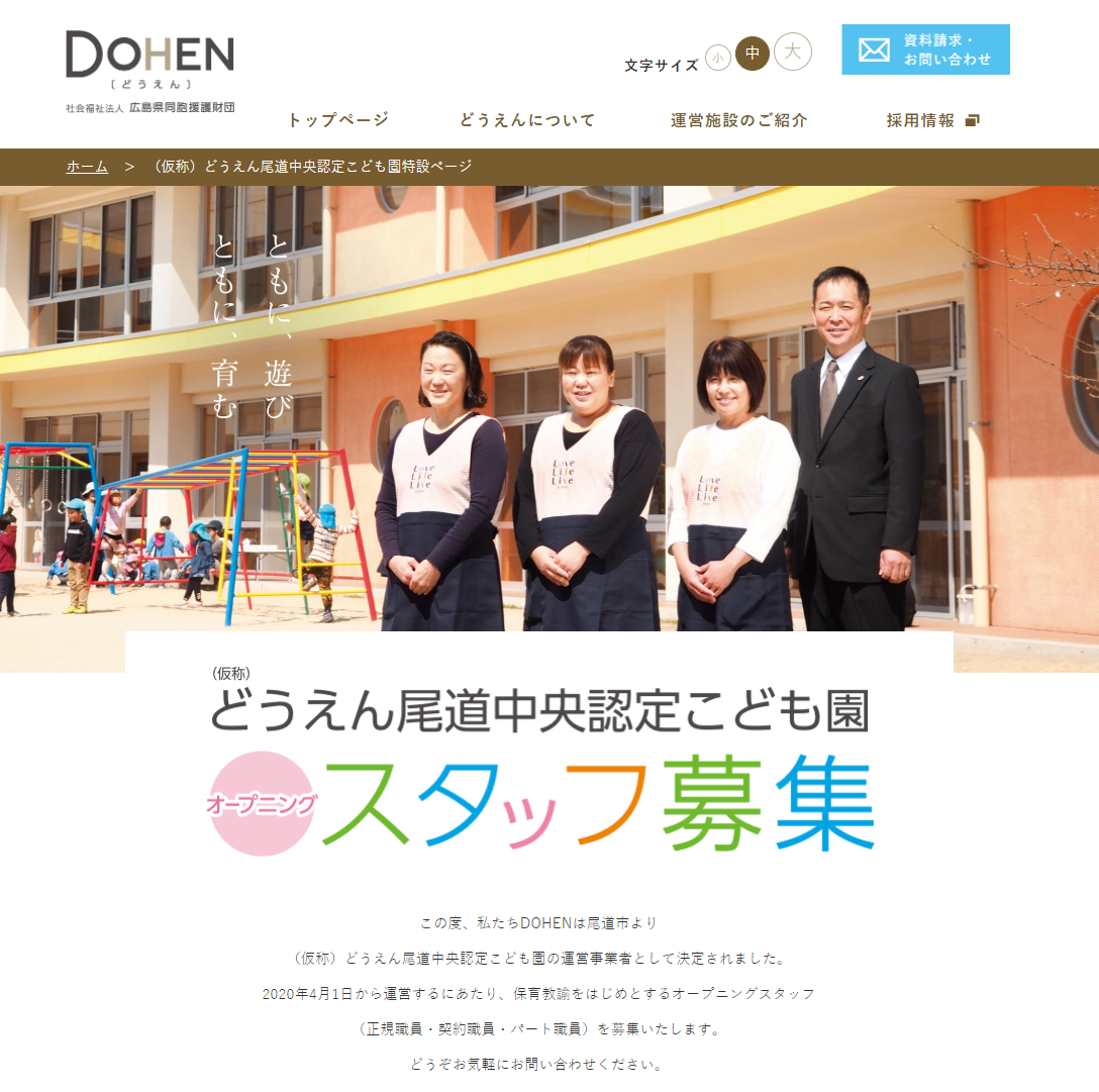 本日、(仮称)どうえん尾道中央認定こども園特設ページを公開いたしました。